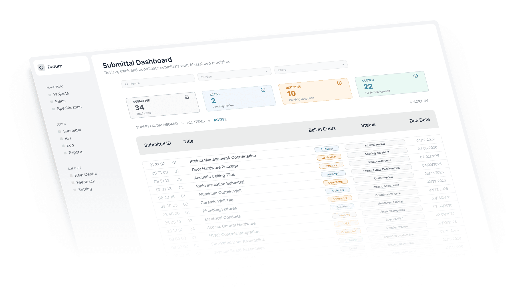 Submittals, Specs